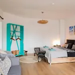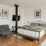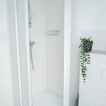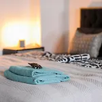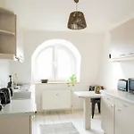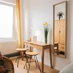 Das Apartment bietet den Gästen eine Sitzecke mit Blick auf das die Stadt. Die Unterkunft ist ebenfalls mit Parkettbodenbelag ausgestattet. Dieses Apartment verfügt über ein Badezimmer mit einem Haartrockner, einem Wäschetrockner und Handtüchern. Außerdem gibt es eine getrennte Toilette und eine Dusche usw.